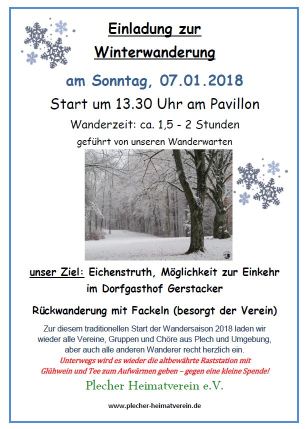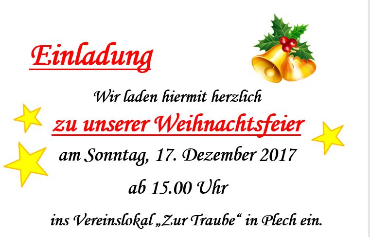 Wir laden alle Mitglieder und Freunde des Plecher Heimatvereins zu unserer Weihnachtsfeier am Sonntag, 17.12.2017 ab 15 Uhr ins Gasthaus „Zur Traube“ in Plech ein.