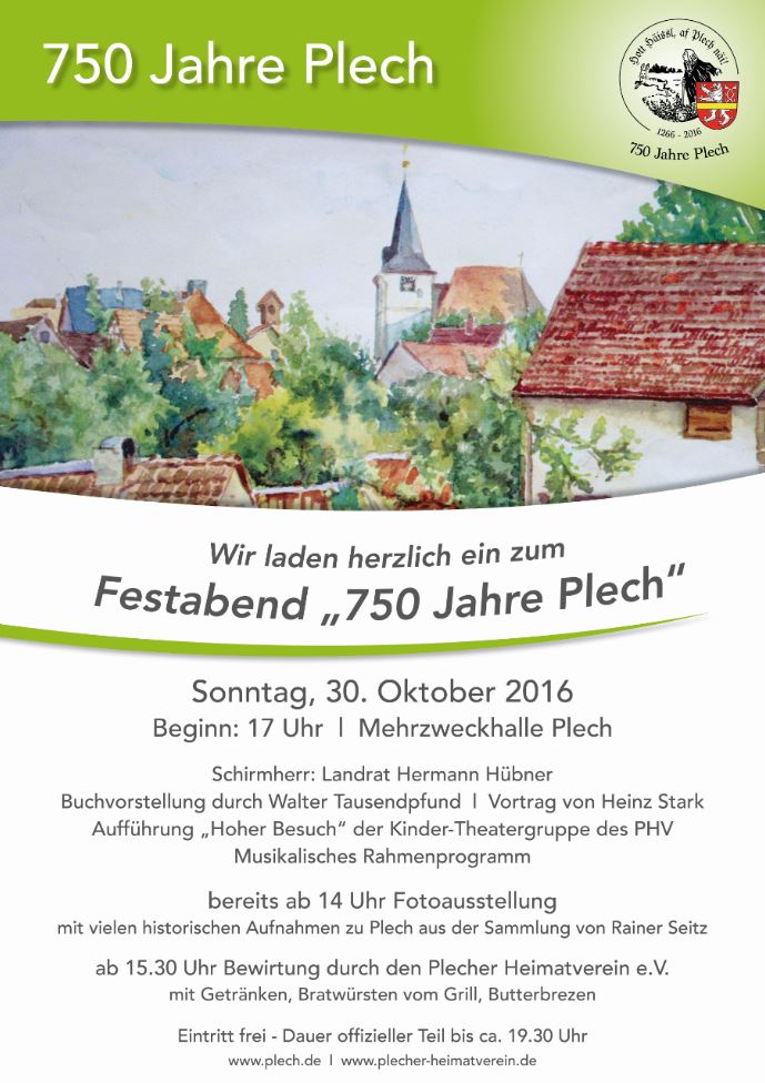Anmeldung beim Plecher Heimatverein e.V., Frau A. Görlich Telefon: 09244/631